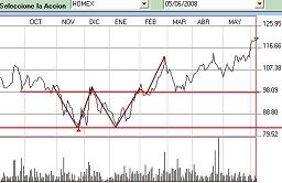 Gráfica de HOMEX mostrando doble piso en Ene'08