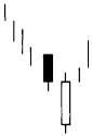 Formación de cambio de tendencia a alcista, en la que intervienen tres velas.
