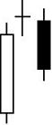 Es un patrón de dos velas japonesas que significa una vuelta a la tendencia bajista.