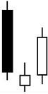 Formación de tres velas que señala el fin de la tendencia de alza.