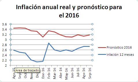 El comportamiento de la inflación en el año ha sido al alza después de haber alcanzado un mínimo del 2.13% en diciembre del 2015. A pesar de esta alza, el nivel de inflación anual todavía no llega al pronóstico de los expertos, aunque el aumento en el precio de la gasolina y la devaluación del peso estarían generando presión al alza en la misma.