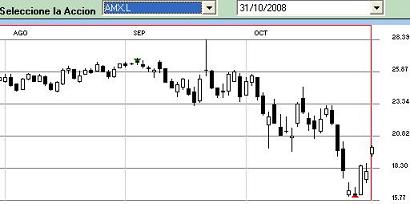 | Las velas japonesas son una técnica muy antigua que en base al pasado de los precios, busca predecir movimientos futuros en los mismos. Aquí trataremos de explicar algunas formaciones con velas japonesas que pueden ayudar en la toma de decisiones. ¿Cómo se dibuja una vela japonesa? Una vela se construye utilizando cuatro precios de una sesión: El precio de apertura, el máximo alcanzado, el mínimo registrado y el precio de cierre. Primero se procede a dibujar un rectángulo con los precios de apertura y cierre. Ese rectángulo es el cuerpo de la vela. En caso de que el precio de cierre sea mayor al precio de apertura, será un cuerpo blanco. En caso de que el cierre sea menor a la apertura, será un cuerpo negro. Por encima de la vela se dibuja una linea hasta el precio máximo, y por abajo una linea hasta el precio mínimo. Esas lineas se les llama sombras.