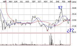 En esta gráfica de ICH al 20 de marzo del 2006, se puede suponer que estamos iniciando una onda 3, que por definición es la más larga. El cruce sobre las medias móviles nos da señal de entrada.