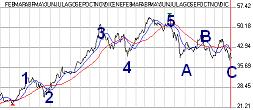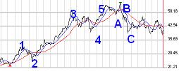 | Usando el conteo de Ondas de Elliot se busca tratar de máximizar rendimientos y disminuir el riesgo. El siguiente es un ejemplo de como invertir. El promedio de 60 días nos ayuda para suavizar la gráfica y poder contar mejor las ondas.
