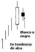 Formación de tres velas que señala el fin de la tendencia de alza.